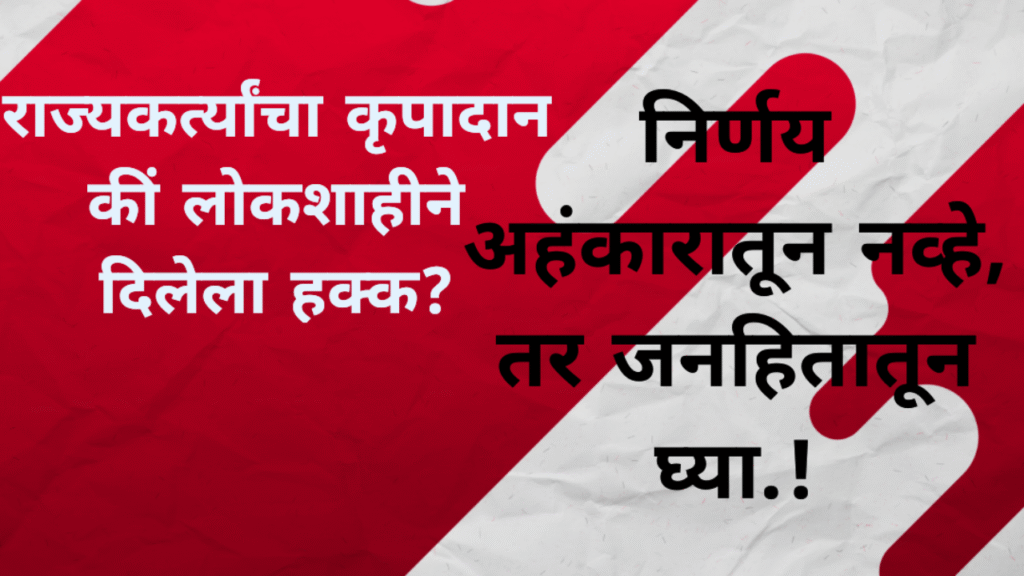 आजच्या परिस्थितीत नागरिक, अधिकारी आणि प्रशासन, सगळ्यांनी एकच अपेक्षा ठेवली आहे: राजकीय निर्णय हे अहंकारातून नव्हे, तर जनहितातून घ्या. आणि अधिकाऱ्यांच्या संघर्षाचा आदर ठेवूनच शासननिर्णय जारी करा. कारण शेवटी ज्यांनी आयुष्य होरपळून राष्ट्रसेवेचे स्वप्न उभे केले, त्यांचा सन्मान हा राज्यकर्त्यांचा कृपादान नसून, लोकशाहीने दिलेला हक्क आहे.