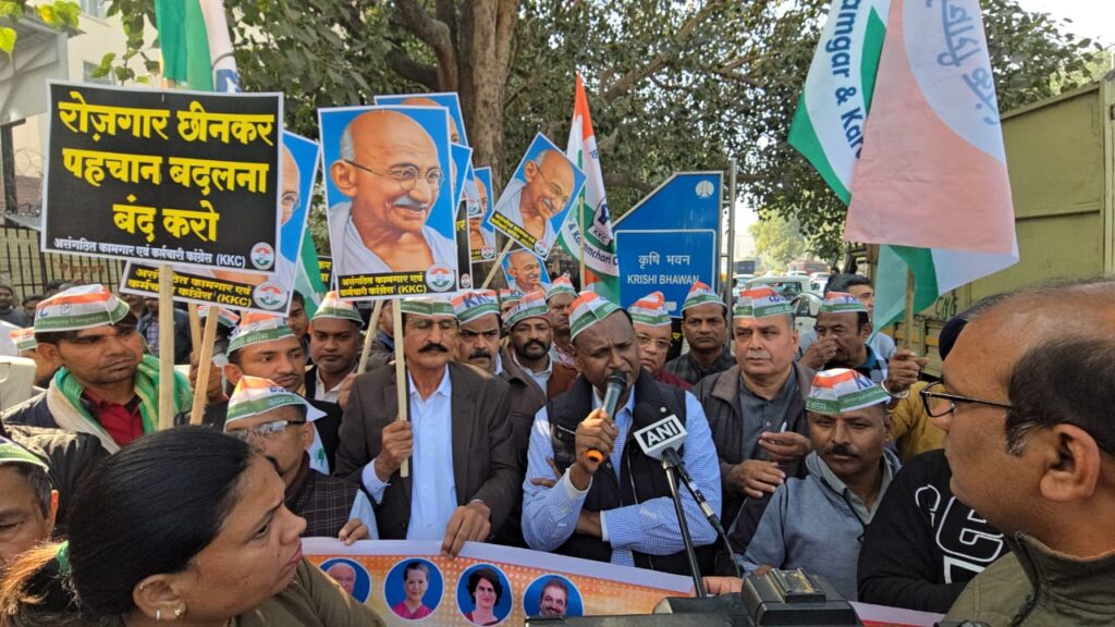 नई दिल्ली, 17 दिसंबर 2025 (उपसंपादक:सतीश वागरे ) आज दिल्ली के कृषि भवन पर एक जोरदार विरोध प्रदर्शन हुआ, जहाँ असंगठित कामगार एवं कर्मचारी कांग्रेस (केकेसी) के राष्ट्रीय अध्यक्ष डॉ. उदित राज के नेतृत्व में ‘विकसित भारत रोज़गार और आजीविका गारंटी मिशन (ग्रामीण) विधेयक, 2025’ (VB-G RAM-G Bill) की प्रतियाँ जलाकर इसे रद्द करने की माँग की गई।