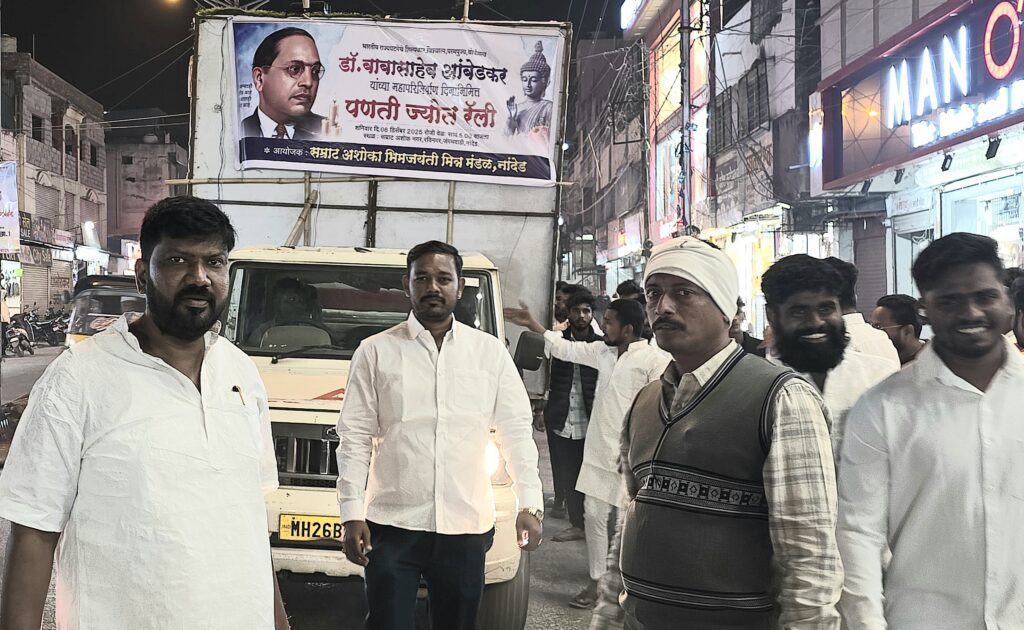 दि. ६ नांदेड (प्रतिनिधी नांदेड शहर ) ____________________भारतीय संविधानाचे शिल्पकार, भारतरत्न डॉ. बाबासाहेब आंबेडकर यांच्या महापरिनिर्वाण दिनानिमित्त नांदेड शहरात सम्राट अशोका भीम जयंती मित्र मंडळाच्या वतीने काढण्यात आलेली पणती ज्योत रॅली ही केवळ एक श्रद्धांजली नव्हे, तर बाबासाहेबांच्या विचारांची जिवंत मशालच ठरली. या रॅलीतून सामाजिक समतेचा, मानवतेचा आणि न्यायाचा संदेश पुन्हा एकदा जनतेच्या मनात खोलवर रुजवण्याचा प्रयत्न करण्यात आला.सम्राट अशोक नगर येथून सुरू झालेली ही ज्योत यात्रा थेट डॉ. बाबासाहेब आंबेडकर यांच्या पूर्णाकृती पुतळ्यापर्यंत पोहोचली. हजारो पणत्यांच्या प्रकाशात न्हाऊन निघालेल्या रस्त्यांवरून चालणारी ही रॅली बाबासाहेबांच्या तेजस्वी विचारांचे प्रतीक ठरली. या कार्यक्रमात सामाजिक कार्यकर्ते मयूर भाऊ कोकरे आणि युवा नेते प्रदीप भाऊ भोकरे यांच्या सहकार्याने हा उपक्रम यशस्वीपणे पार पडला. त्यांच्या नेतृत्वामुळे या उपक्रमाला अधिक सामाजिक बळ मिळाले.या पणती ज्योत रॅलीमध्ये मोठ्या संख्येने आंबेडकरी अनुयायी, महिला उपासिका व उपासकांचा सहभाग ही बाब विशेष उल्लेखनीय ठरली. महिलांची मोठ्या प्रमाणावरील उपस्थिती ही बाबासाहेबांच्या स्त्रीमुक्तीच्या विचारांना मिळालेली खरी पावती आहे. शिक्षण, स्वाभिमान, समता आणि बंधुतेचा संदेश जनतेपर्यंत पोहोचवण्याचे कार्य या रॅलीतून घडले.महापरिनिर्वाण दिन हा केवळ शोकाचा दिवस नसून, बाबासाहेबांच्या विचारांना नव्याने उजाळा देण्याचा, त्यांच्या संघर्षातून प्रेरणा घेण्याचा दिवस आहे. अन्यायाविरुद्ध आवाज उठवणे, दुर्बलांना बळ देणे आणि संविधानातील मूल्यांचे रक्षण करणे हेच बाबासाहेबांना खरे अभिवादन ठरेल हा संदेश या रॅलीतून प्रभावीपणे समाजापर्यंत पोहोचला.आजच्या अस्वस्थ सामाजिक वातावरणात अशा प्रकारचे उपक्रम समाजाला सकारात्मक दिशा देणारे ठरतात. बाबासाहेबांचे विचार हे काळावर मात करणारे आहेत. त्यांची शिकवण पिढ्यान् पिढ्या उजळून टाकणारी आहे. पणती ज्योत रॅलीच्या माध्यमातून नांदेडमध्ये त्या विचारांची मशाल अधिक तेजस्वीपणे प्रज्वलित झाली आहे, यात शंका नाही.ही केवळ एक रॅली नव्हती, तर स्वाभिमान, संघर्ष आणि संविधानाच्या मूल्यांचे चालते-बोलते दर्शन होते. पणती ज्योत रॅली यशस्वी करण्यासाठी स्वप्निल उकंडे,पप्पू बुक्‍तरे, बलराज सावंत, सौरभ कांबळे, विशाल ढोले, करण बुक्‍तरे आदींचे परिश्रम लाभले होते.