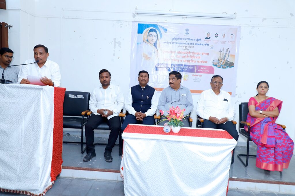 तसेच सामाजिक धोरण मार्गदर्शक केले या वेळी प्रमुख उपस्थिती म्हणून डॉ. हनुमंत कंधारकर(व्यवस्थापन परिषद सदस्य)मा. शिवाजी चांदणे,(आधिसभा सदस्य) हॆ होते तर पुण्यश्लोक अहिल्यादेवी गौरवगाथा सांस्कृतिक कार्यक्रमाचे आयोजन प्रा. पत्की मॅडम आणि प्रा. अभिजित वाघमारे यांनी केले.या कार्यक्रमाचे मुख्य आयोजक श्री. विकास खारगे (भा.प्र.से.)मा. मुख्यमंत्र्यांचे अपर मुख्य सचिव तथा अपर मुख्य सचिव, सांस्कृतिक कार्य विभाग आणि श्री. विभीषण चवरे संचालक, सांस्कृतिक कार्य संचालनालय, महाराष्ट्र शासन हॆ होते तर कार्यक्रमाचे अध्यक्ष डॉ. येळणे यांनी पुण्यश्लोक अहिल्यादेवी होळकर जीवन म्हणजे भारतीय इतिहासाचा सुवर्ण महोत्सव आहे आणि सामाजिक शास्त्रे