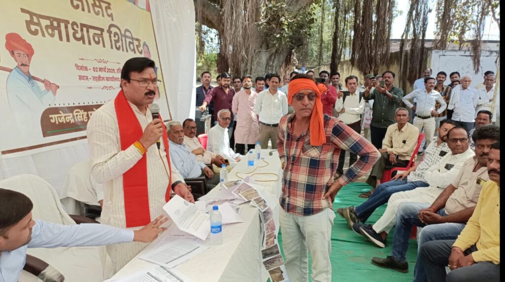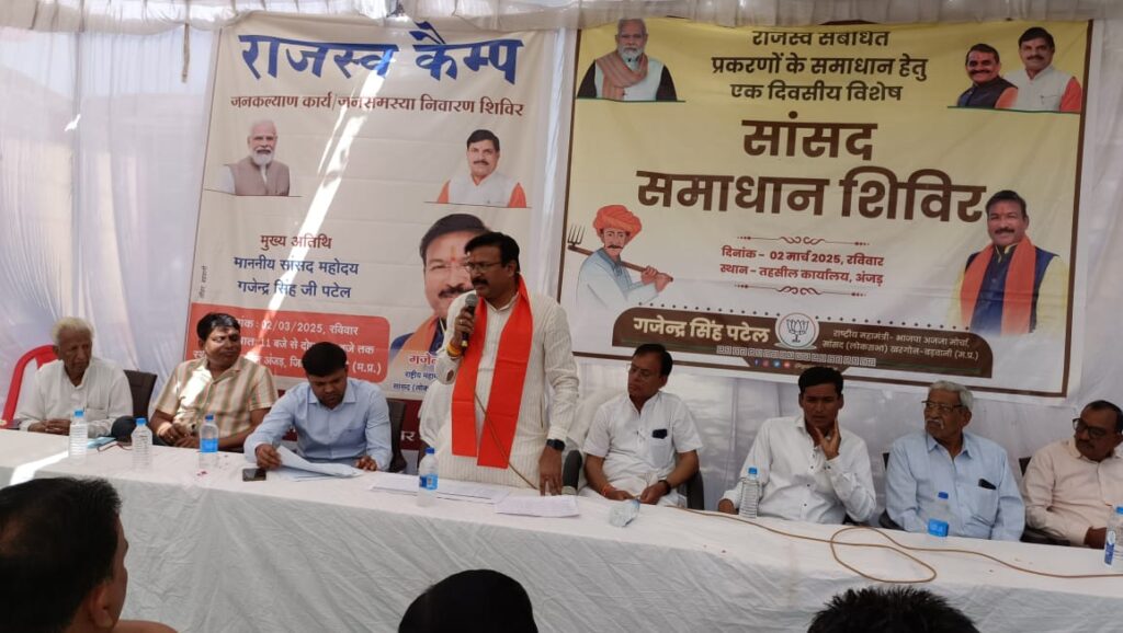 उक्त शिविर में राजस्व, नगर परिषद, विद्युत विभाग, स्वास्थ सहित आदि विभागों के कर्मचारी व अधिकारी उपस्थित रहे जिसमे नगर सहित आस-पास के ग्रामीण क्षेत्र से अनेक किसान व लोग अपनी-अपनी समस्याओं को लेकर पहुचे जहां सांसद गजेंद्र सिंह पटेल ने उपस्थित सभी अधिकारियों से आमजनो के सभी लंबित प्रकरणों का शीघ्र व समय सीमा में निराकरण करने के सख्त दिशा निर्देश दिए गए।