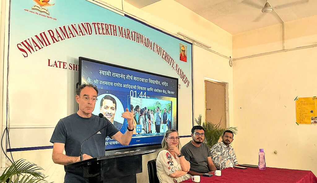 किनवट, नांदेड: (विशेष प्रतिनिधी) स्वामी रामानंद तीर्थ मराठवाडा विद्यापीठाच्या कै. श्री. उत्तमराव राठोड आदिवासी विकास व संशोधन केंद्र, किनवट येथे आंतरराष्ट्रीय स्तरावरील संवादाचा ठसा उमटवणारा एक विशेष कार्यक्रम संपन्न झाला. बेल्जियम आणि ब्राझील सारख्या दूरवरच्या देशांतील नामवंत संशोधकांनी या ग्रामीण संशोधन केंद्राला भेट देऊन विद्यार्थ्यांशी थेट संवाद साधला. शेतकरी आत्महत्येच्या गंभीर समस्येवर जागतिक व स्थानिक संशोधनाचा प्रकाश टाकणारा हा कार्यक्रम शैक्षणिक दृष्ट्या महत्त्वपूर्ण ठरला.या प्रसंगी बेल्जियमचे प्रा. फ्रेडरिक व्हॅंडनबर्ग आणि ब्राझीलच्या प्रा. सिंथिया झेवियर या दोन आंतरराष्ट्रीय ख्यातनाम अभ्यासकांनी विद्यार्थ्यांसमोर आपले मूलगामी विचार मांडले. ते सध्या महाराष्ट्रातील शेतकरी आत्महत्यांच्या सामाजिक-आर्थिक पैलूंचा सखोल अभ्यास करत आहेत. जवाहरलाल नेहरू विद्यापीठ (जेएनयू) येथील संशोधक श्री. दिशांत राठोड यांचीही या शैक्षणिक संवादात प्रमुख सहभागिता होती. आंतरराष्ट्रीय तज्ज्ञांनी त्यांच्या संशोधनाच्या आधारे शेतकरी आत्महत्यांची मूळ कारणे विद्यार्थ्यांसमोर स्पष्ट केली. त्यानुसार शेतीचा वाढता उत्पादन खर्च, शेतमालाला मिळणारा अल्प नफा, बाजारपेठेतील अनिश्चितता, कर्जबाजारीपणाचा वाढता साया आणि त्यामुळे निर्माण होणारा प्रचंड मानसिक दबाव ही प्रमुख कारणे आहेत. या जागतिक दृष्टिकोनातून स्थानिक समस्येचे विश्लेषण ऐकून विद्यार्थी आणि संशोधक यांना नवा विचारमंथन करण्याची संधी मिळाली.कार्यक्रमाच्या प्रास्ताविक भाषणात केंद्राचे समन्वयक डॉ. मार्तंड कुलकर्णी यांनी या आंतरराष्ट्रीय संवादामागील प्रेरणास्थान विद्यापीठाचे कुलगुरू डॉ. मनोहर चासकर यांची दूरदृष्टी ठरल्याचे नमूद केले. “डॉ. चासकर यांच्या मार्गदर्शनामुळे या ग्रामीण संशोधन केंद्राचा खऱ्या अर्थाने कायापालट झाला आहे. आंतरराष्ट्रीय स्तरावरील अभ्यासक आता या केंद्राची दखल घेत आहेत, हे येथील शैक्षणिक व संशोधन वातावरणाच्या उंचीचे द्योतक आहे,” असे विचार डॉ. कुलकर्णी यांनी व्यक्त केले. त्यांनी प्र-कुलगुरू डॉ. अशोक महाजन, अधिष्ठाता डॉ. म. के. पाटील यांसह इतर विद्यापीठ प्रशासनाच्या सहकार्याबद्दलही आभार मानले. या कार्यक्रमामुळे केंद्रातील विद्यार्थ्यांना जागतिक स्तरावरील संशोधन पद्धती आणि दृष्टिकोन यांची प्रत्यक्ष ओळख करून घेण्याची संधी मिळाली. शैक्षणिक दृष्ट्या हा एक ‘लिव्ह केस स्टडी’ प्रसंग ठरला. प्रा. डॉ. प्रवीण खंडागळे यांनी पाहुण्यांचा परिचय करून दिला. प्रा. श्रीराम पवार यांनी सूत्रसंचालन केले तर प्रा. चेतन जाधव यांनी आभार प्रदर्शित केले. डॉ. नितीन गायकवाड, डॉ. योगे