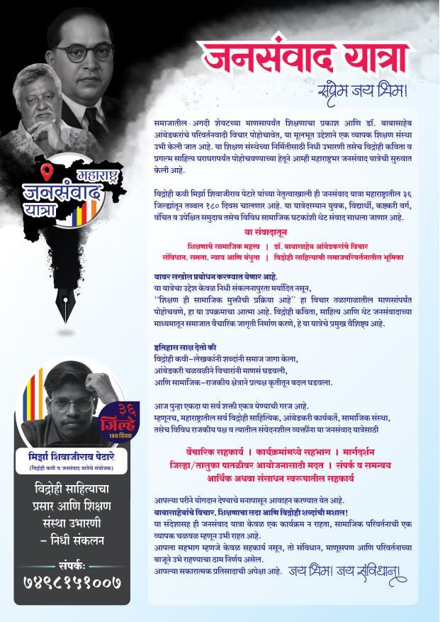 विद्रोही कवी मिर्झा शिवाजीराव पेटारे यांच्या नेतृत्वाखाली ‘महाराष्ट्र जनसंवाद यात्रा’चा ऐतिहासिक एल्गार